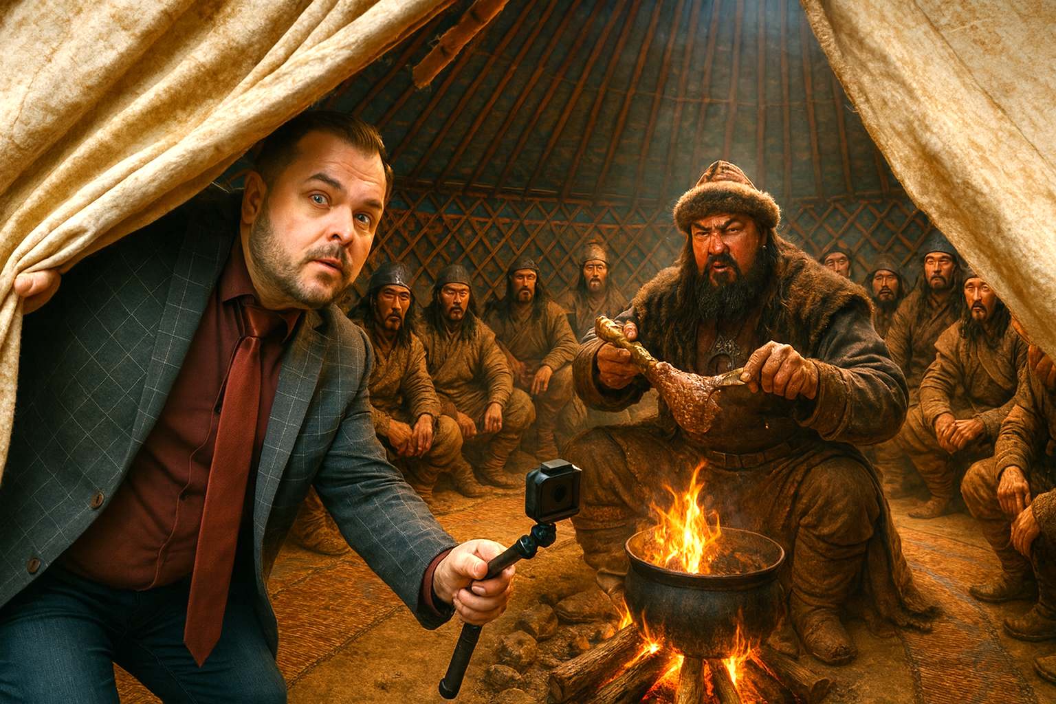 Да, на фоне Европы того времени Чингисхан выглядел чуть ли не «менеджером от бога». Служители культа превратились в его рекламный отдел. Они молились за победы, пели о нем гимны, называли его «избранником небес». И народ верил. Это было как если бы диктатор запустил федеральный телеканал: с утра до ночи тебе рассказывают, какой хан великий.