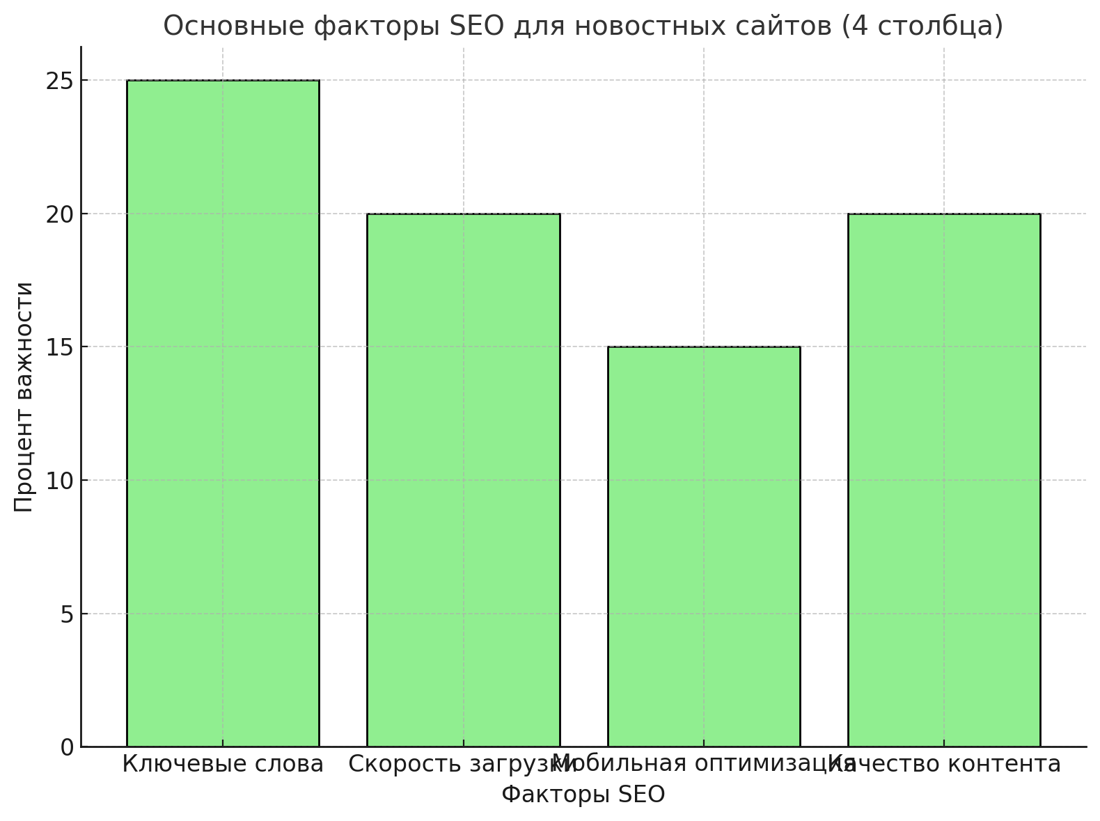 Вот диаграмма о факторах SEO-продвижения новостных сайтов.