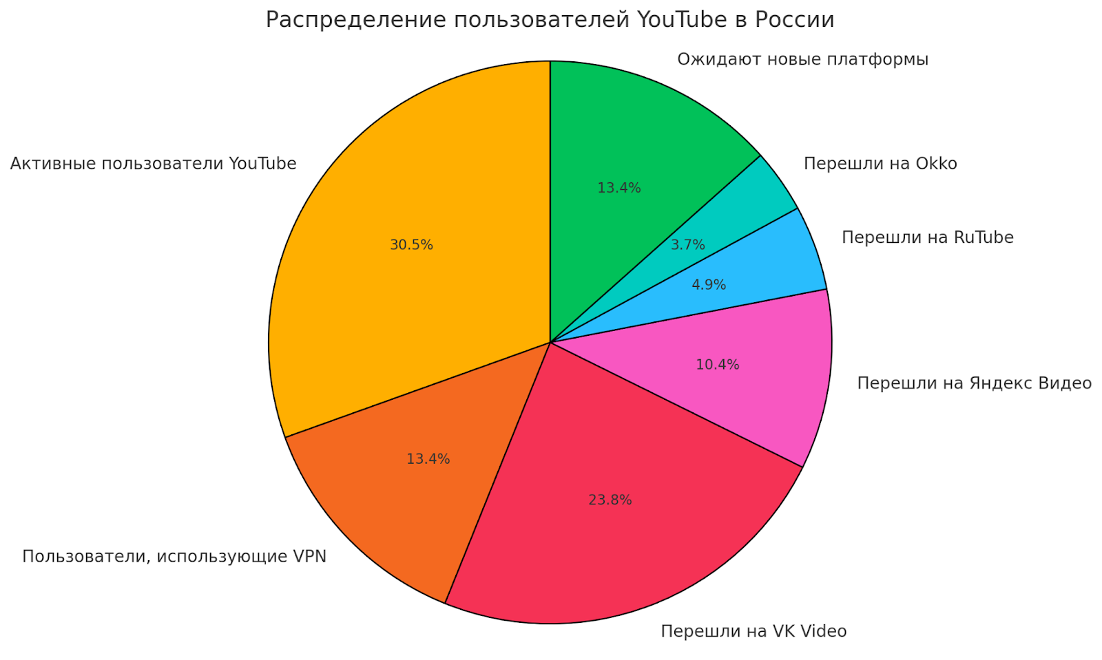 При этом 22% российских зрителей все еще находятся в ожидании появления новых видеосервисов, которые смогут предложить им качественный контент и удобный интерфейс. Оставшаяся часть аудитории продолжает пользоваться YouTube через VPN-сервисы, что также влияет на стабильность и скорость загрузки видео.
