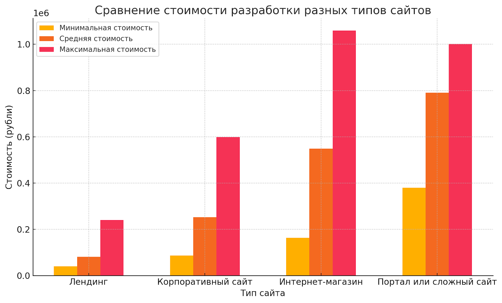 • Высокий уровень сложности (уникальные функции, интеграция с внешними системами, работа с большими объемами данных): от ₽1 001 999 и выше.